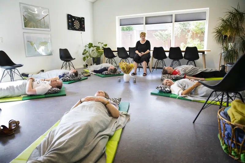 Vi laver øvelser indenfor mindfulness, åndedrættet, bindevævsstræk, Vagus nerve stimulation og Meta kognitive øvelser.
